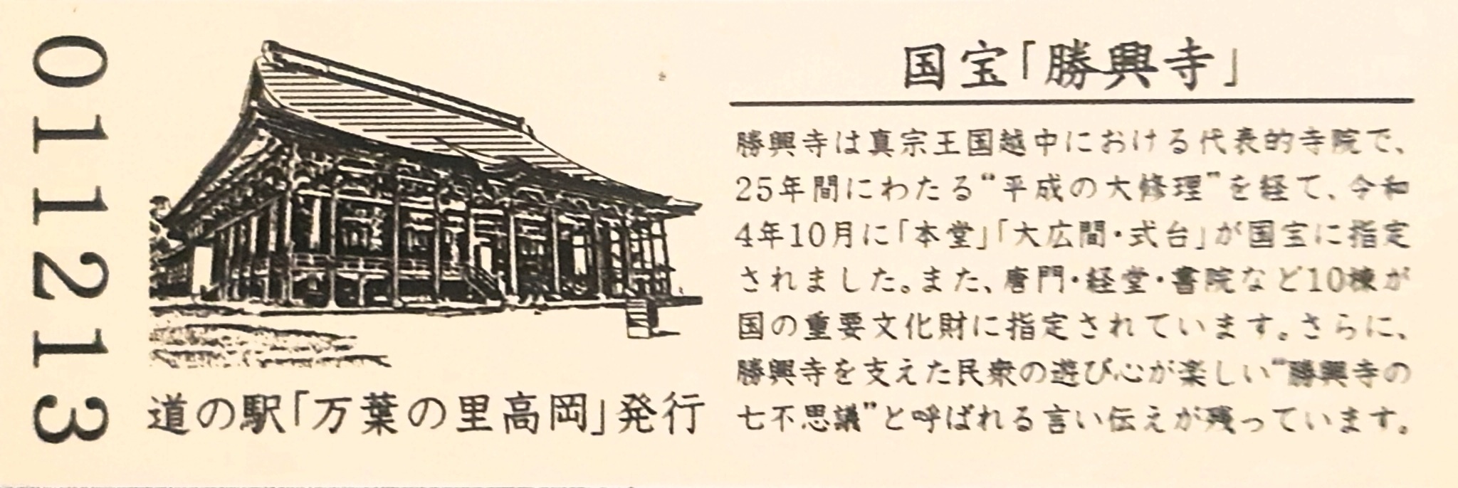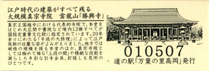 011201~011500 180円きっぷ(国宝「勝興寺」)