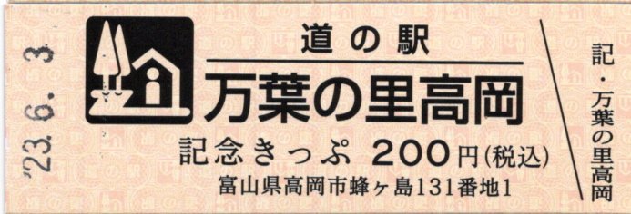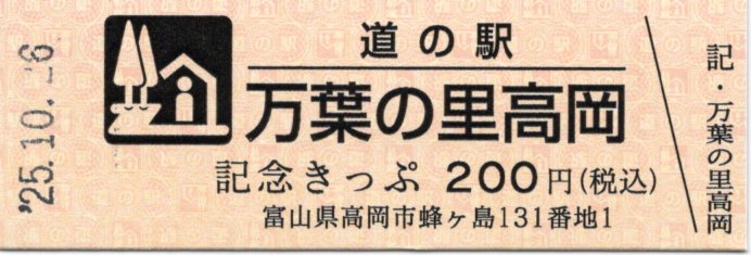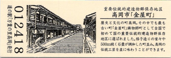 012401~012700 200円きっぷ(高岡市「金屋町」)