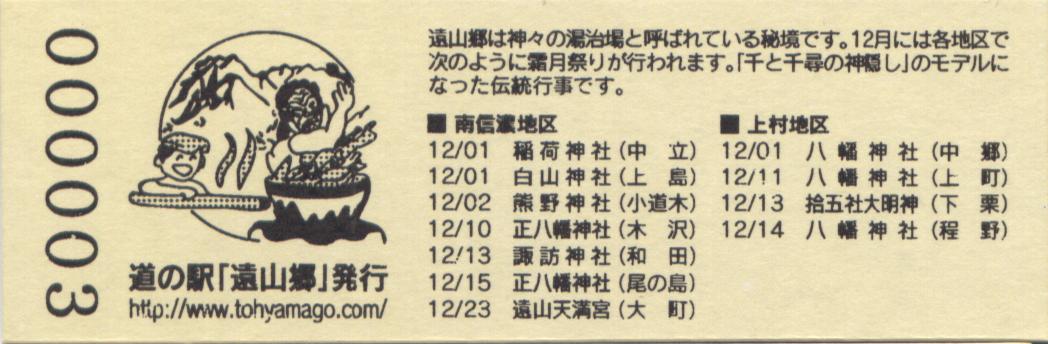 005701~006000 180円きっぷ(南信州遠山郷・しらびそ高原)