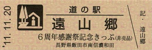 006001~006600 180円きっぷ(南信州遠山郷・日本の里100選)