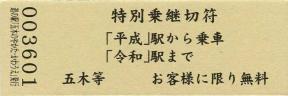 001201~001500 (特)五周年記念きっぷ