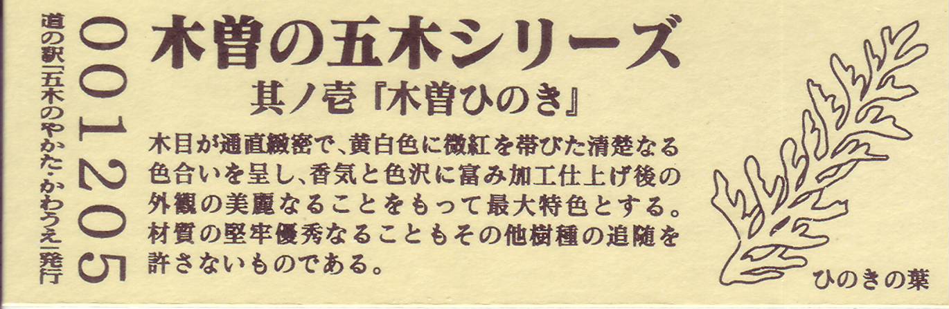 001201~001500 デザインきっぷ(木曽ひのき)