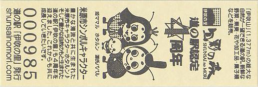 000001~000300 (特)道の駅OPEN1周年記念きっぷ
