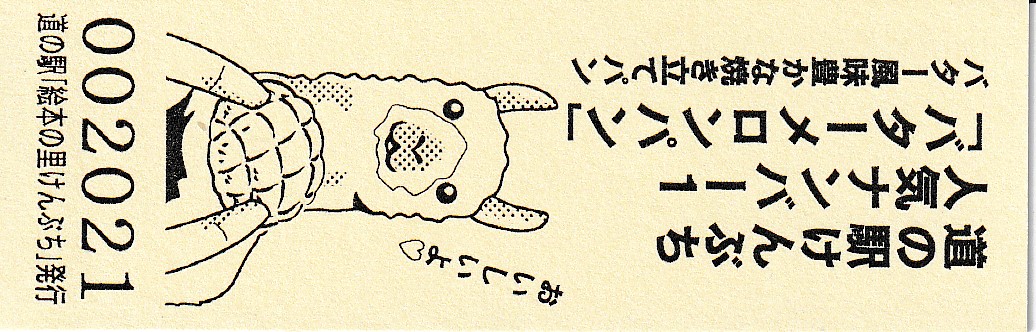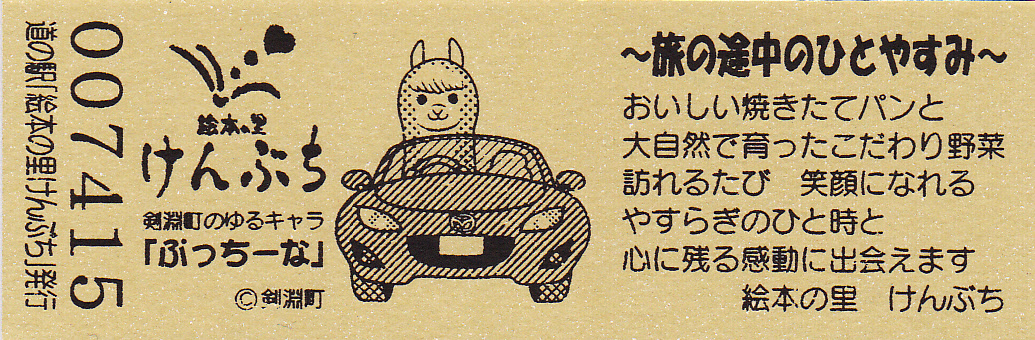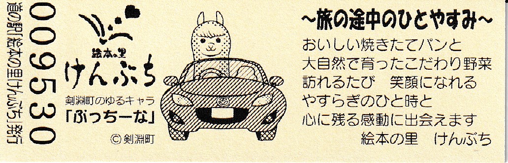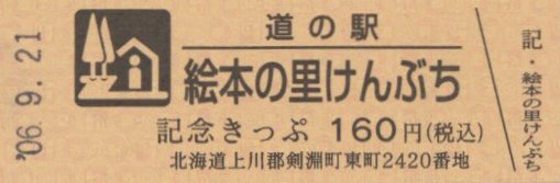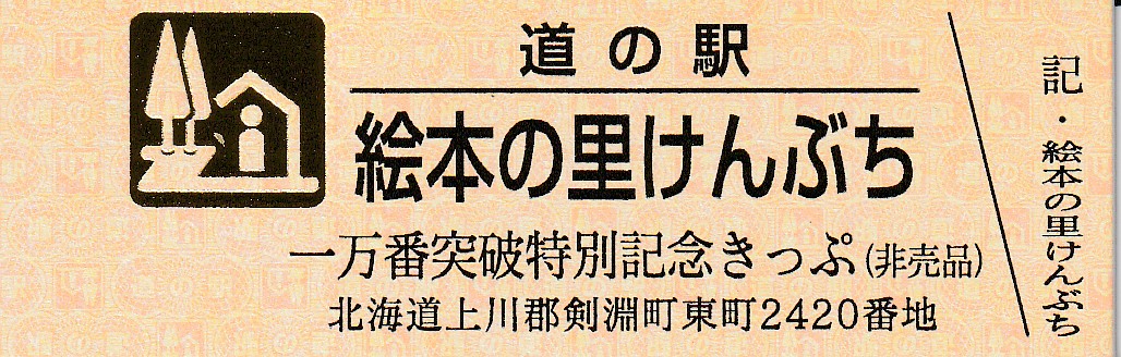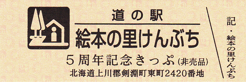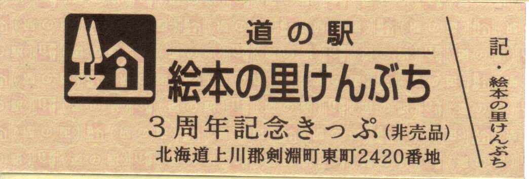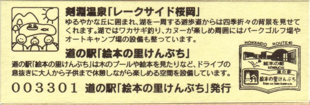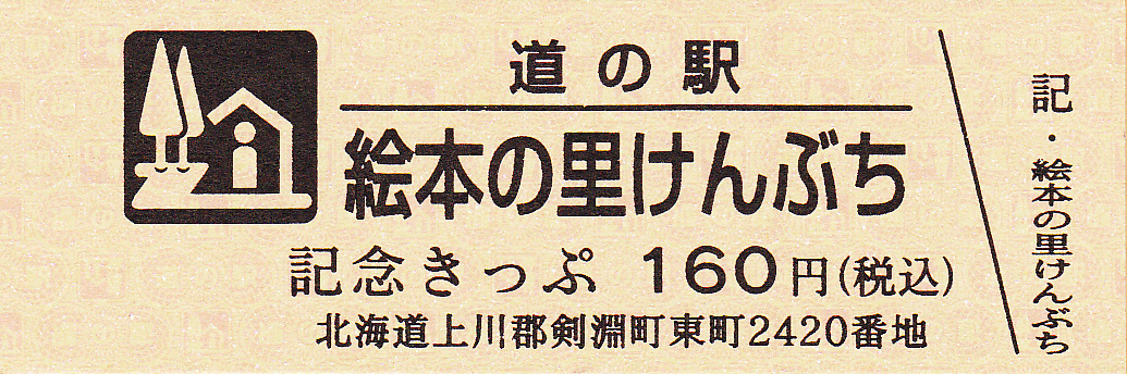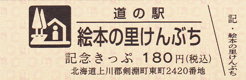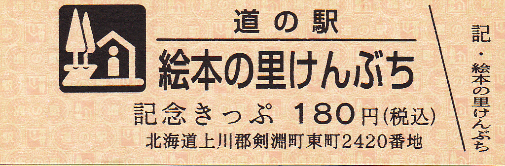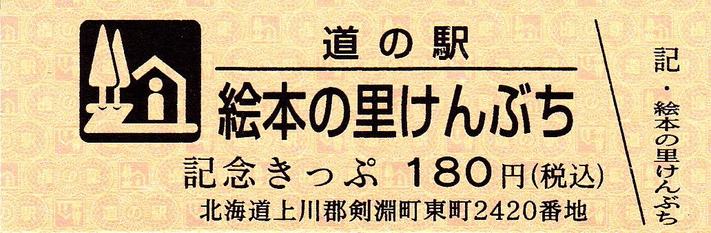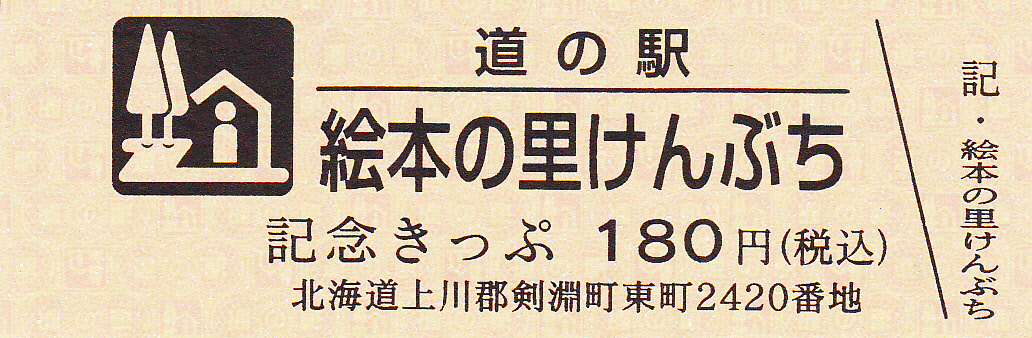 0001-0600:デザインきっぷ(ロゴ・左・ランキング1位達成なし) 0601-1200:デザインきっぷ(ロゴ・左・ランキング1位達成) 1201-1500:デザインきっぷ(ロゴ・右) 1501-1800:デザインきっぷ(かぼちゃプリン) 1801-2100:デザインきっぷ(夢と愛と温かい) 2101-2400:デザインきっぷ(フランスやドイツに) 2401-2700:デザインきっぷ(びばからす) 2701-3000:デザインきっぷ(絵本の館) 3001-3300:デザインきっぷ(スイートパンプキンパイ) 3301-3600:デザインきっぷ(レークサイド桜岡) 3601-4500:デザインきっぷ(ビバアルパカ牧場) 4501-4800:デザインきっぷ(満足度ランキング1位獲得) 4801-5300:デザインきっぷ(豊かな緑に囲まれた剣淵町) 5301-5600:180円きっぷ(豊かな緑に囲まれた剣淵町) 5601-5900:180円きっぷ(ぷっちーな・左・表題なし) 5901-6500:180円きっぷ(ぷっちーな・右) 6501-7400:180円きっぷ(ぷっちーな・左・表題あり) 7401-9500:180円きっぷ(旅の途中のひとやすみ) 9501- :200円きっぷ(旅の途中のひとやすみ)