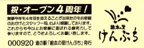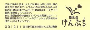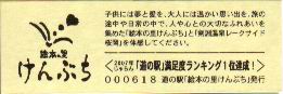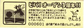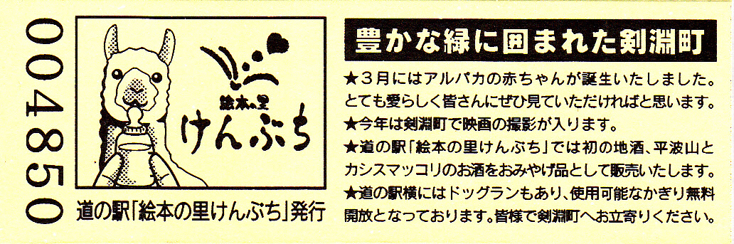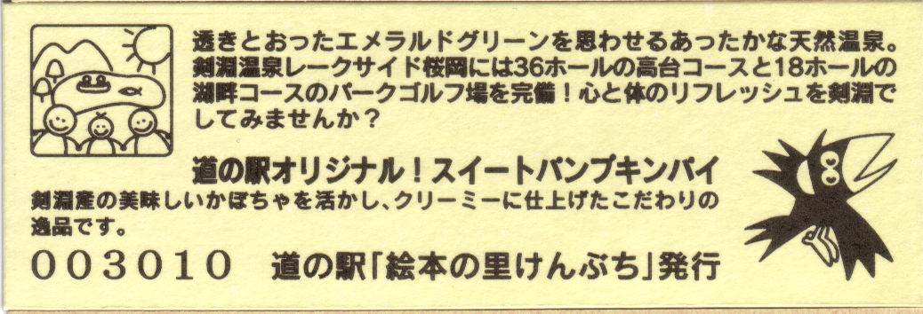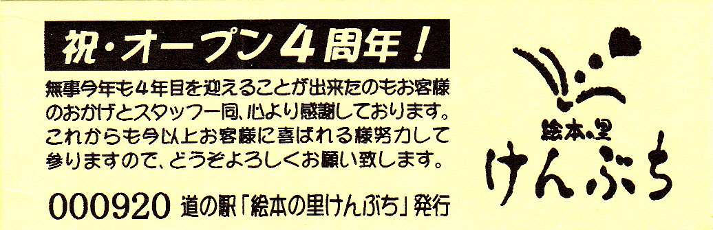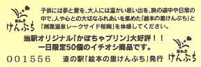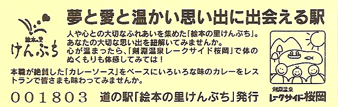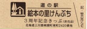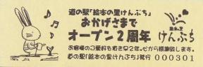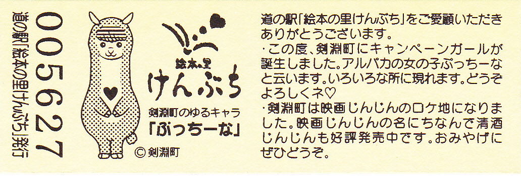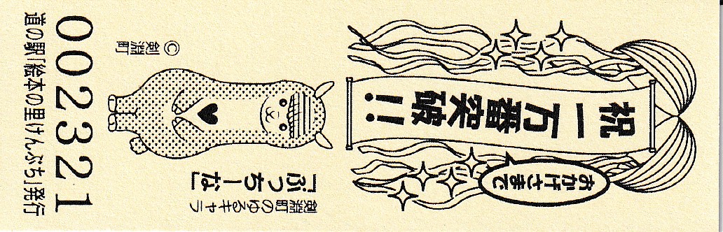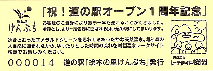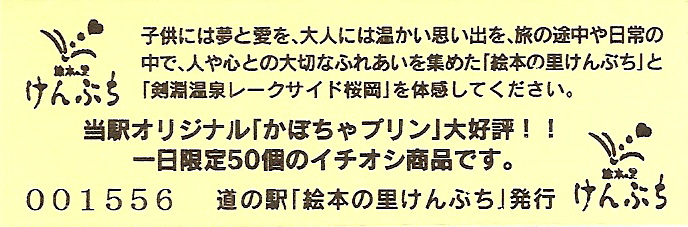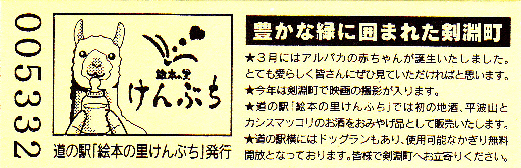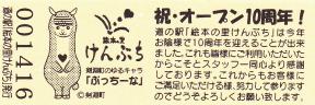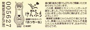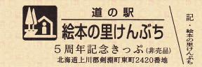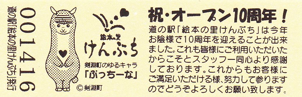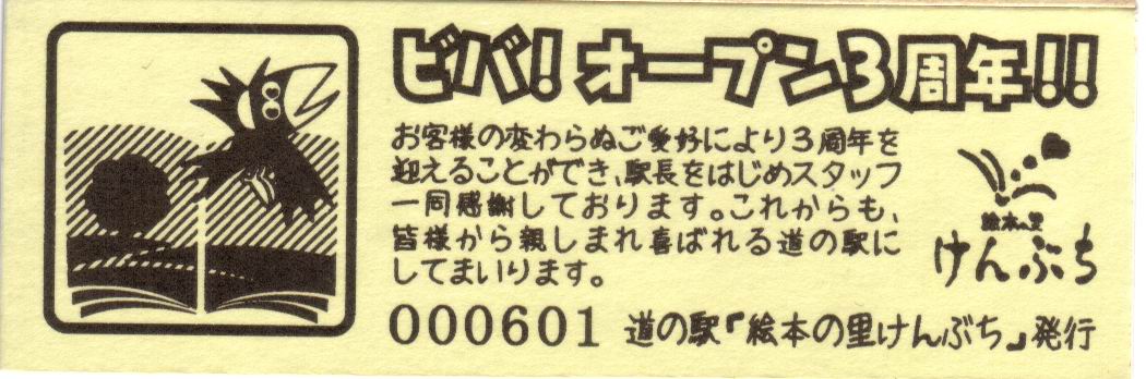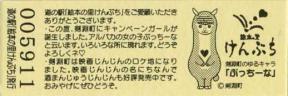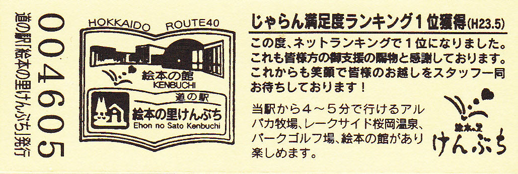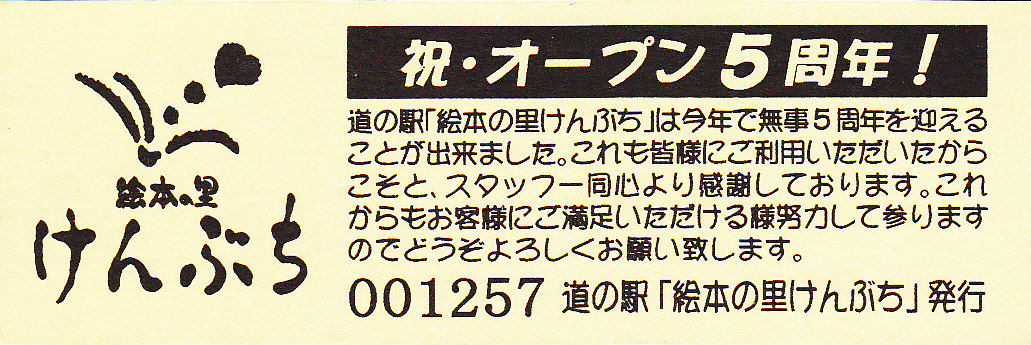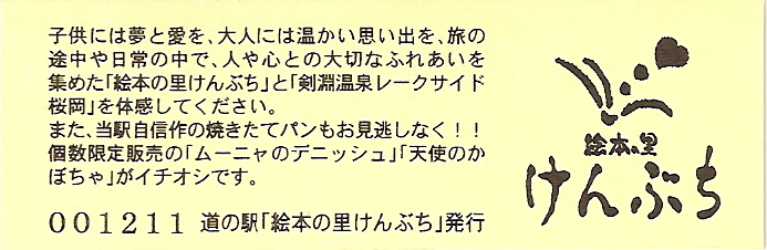 0001-0300:1周年記念きっぷ(配布終了) 0301-0600:2周年記念きっぷ(配布終了) 0601-0900:3周年記念きっぷ(配布終了) 0901-1200:4周年記念きっぷ(配布終了) 1201-1400:5周年記念きっぷ(配布終了) 1401-1700:10周年記念きっぷ(配布終了) 1701-2000:新商品「けんぶちおかき」記念(配布終了) 2001-2300:2024特別記念きっぷ(配布終了) 2301-2600:一万番突破特別記念きっぷ(配布終了)