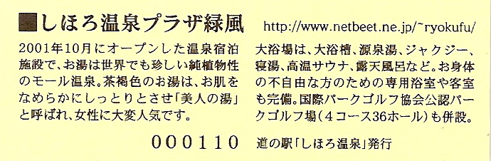 000001-000900:デザインきっぷ(プラザ緑風) 000901-001800:デザインきっぷ(エゾリス) 001801-002100:デザインきっぷ(エゾリス・森と湯と) 002101-002400:デザインきっぷ(エゾリスと温泉・右) 002401-003600:デザインきっぷ(エゾリスと温泉・左) 003601-003900:デザインきっぷ(足湯) 003901-007600:180円きっぷ 007601- :200円きっぷ