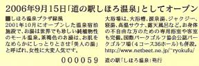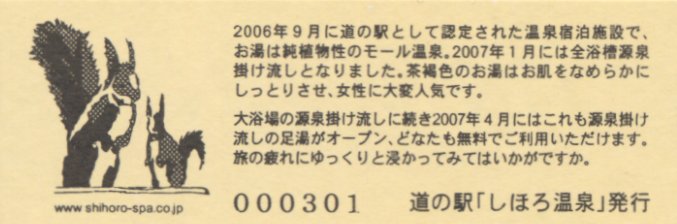 000001-000300:道の駅OPEN記念きっぷ(配布終了) 000301-000600:足湯OPEN記念きっぷ(配布終了)