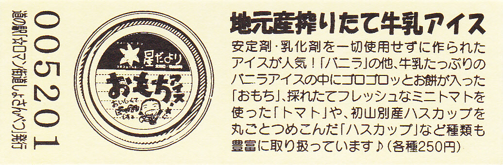 005201~005500 180円きっぷ(地元産搾りたて牛乳アイス)