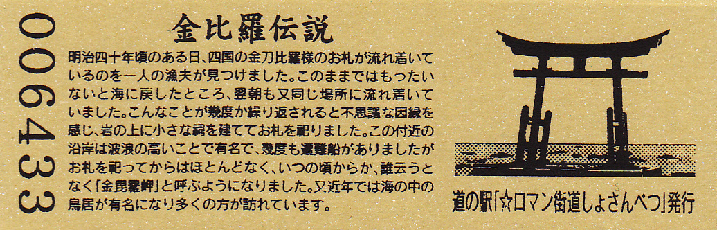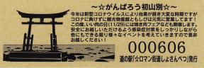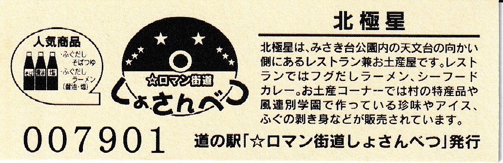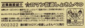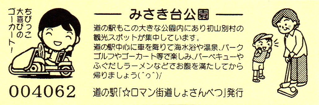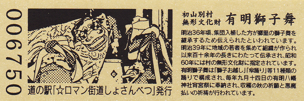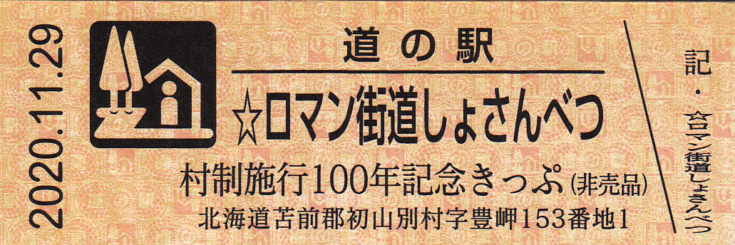 000001-000300:道の駅オープン記念きっぷ(配布終了) 000301-000600:村制施行100年記念きっぷ(配布終了) 000601-000900:村制施行100年記念きっぷ(2020)(配布終了)