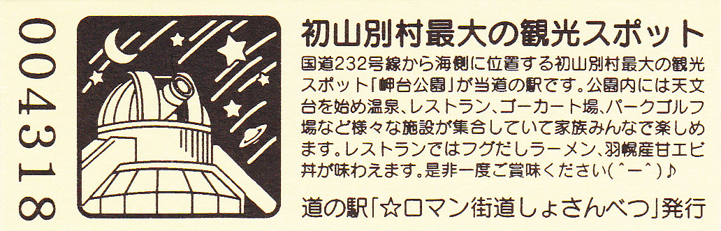 004301~004900 180円きっぷ(初山別村最大の観光スポット)