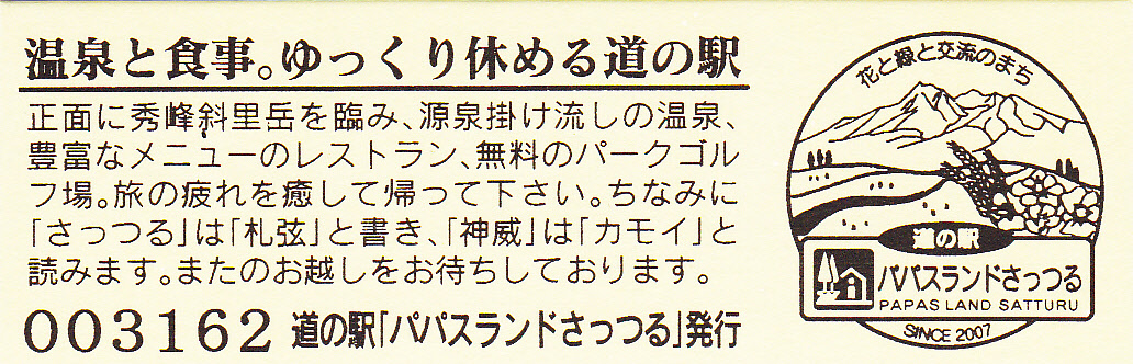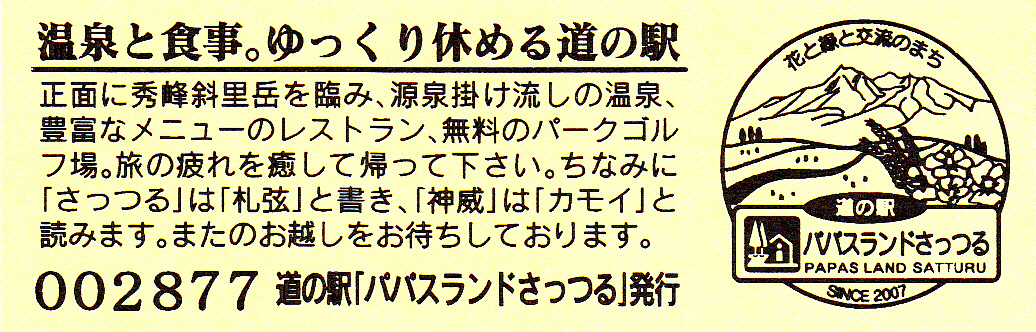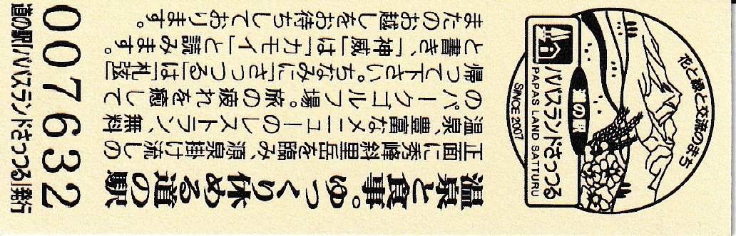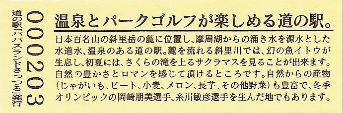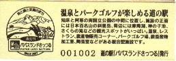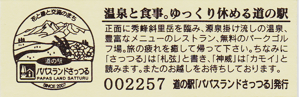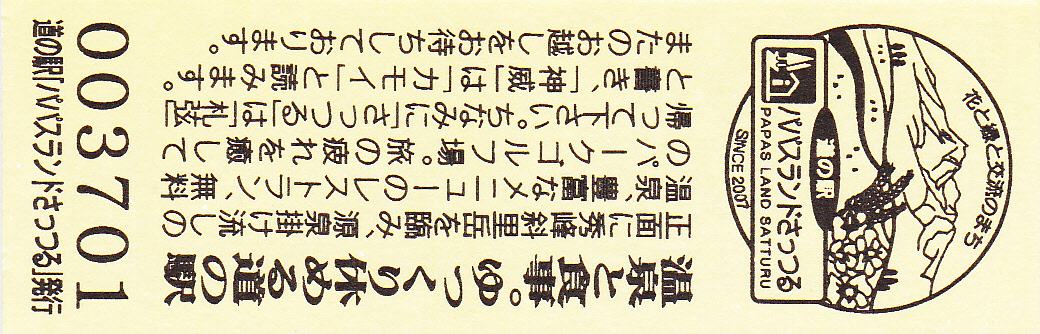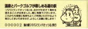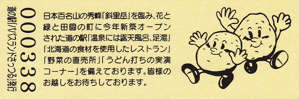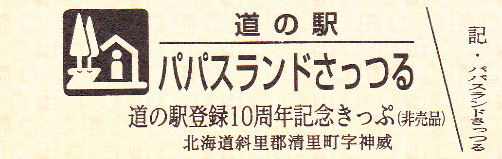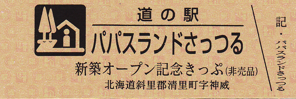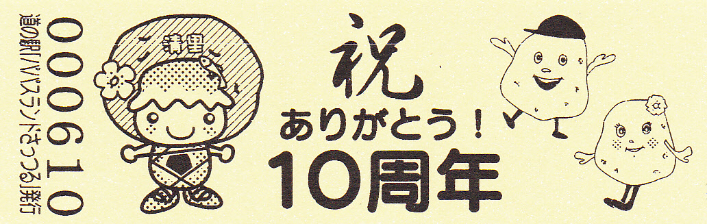 0001-0300:オープン1周年記念きっぷ(配布終了) 0301-0600:新築オープン記念きっぷ(配布終了) 0601-0900:道の駅登録10周年記念きっぷ(配布終了)
