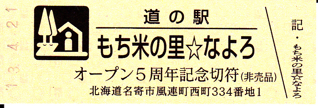 000001-001300:デザインきっぷ(ひまわり) 001301-001600:デザインきっぷ(コスモス) 001601-002300:デザインきっぷ(シラカバ) 002301-002600:デザインきっぷ(オオバナノエンレイソウ) 002601-002900:デザインきっぷ(ふうれんソフト大福・風連産のもち米) 002901-003200:デザインきっぷ(風連田舎大福・縦) 003201-003500:デザインきっぷ(風の寄り道) 003501-003800:デザインきっぷ(ふうれんソフト大福・独自の新製法) 003801-004100:デザインきっぷ(風連田舎大福・横・左) 004101-004400:デザインきっぷ(風連田舎大福・横・右) 004401-006700:180円きっぷ(風連田舎大福なよろう右) 006701-008800:180円きっぷ(風連田舎大福なよろう左) 008801-009800:180円きっぷ(風連田舎大福イラスト左・なよろう右) 009801- :200円きっぷ