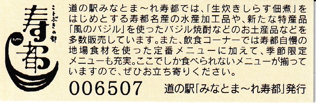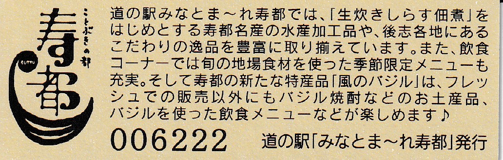 006201~006500 180円きっぷ(寿都ロゴ・バジル焼酎などのお土産品)