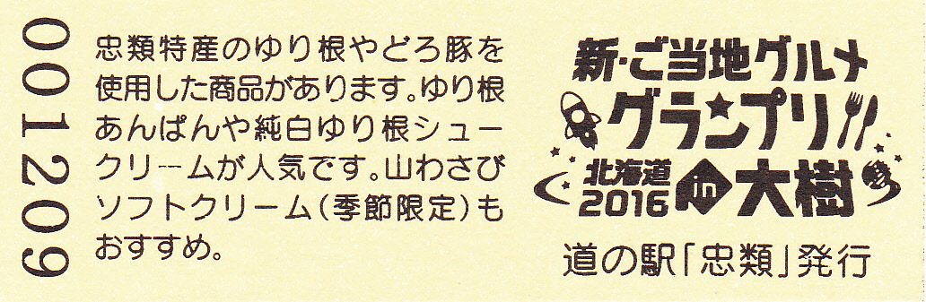 001201~001500 (特)新・ご当地グルメグランプリ北海道2016in大樹開催記念きっぷ