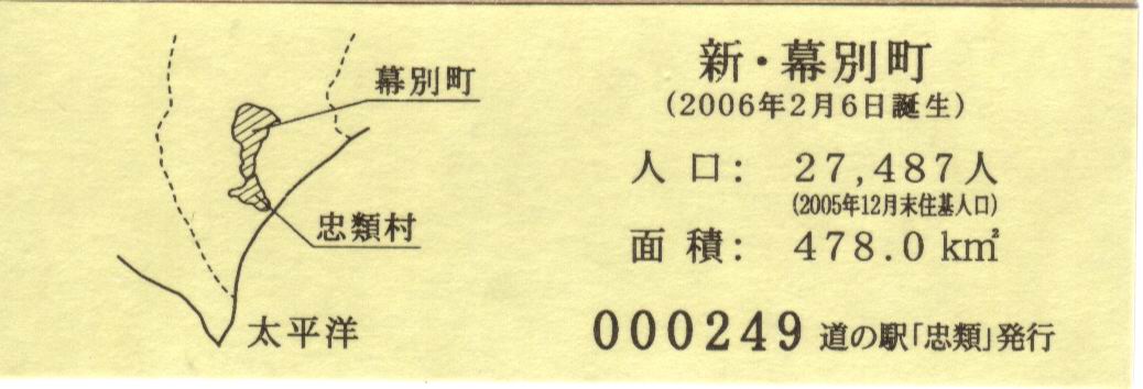 000001~000300 (特)幕別町・忠類村合併記念きっぷ