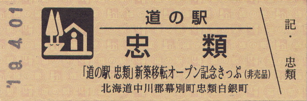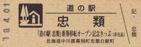 000301~000800 (特)「道の駅忠類」新築移転オープン記念きっぷ