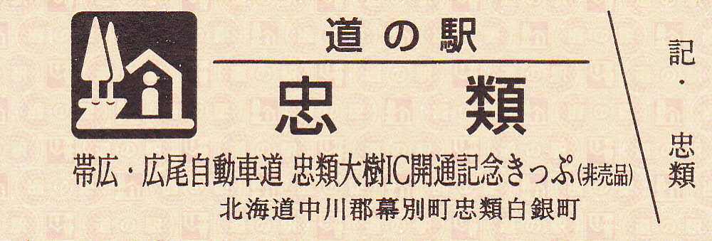 000801~001200 (特)帯広・広尾自動車道 忠類大樹IC開通記念きっぷ