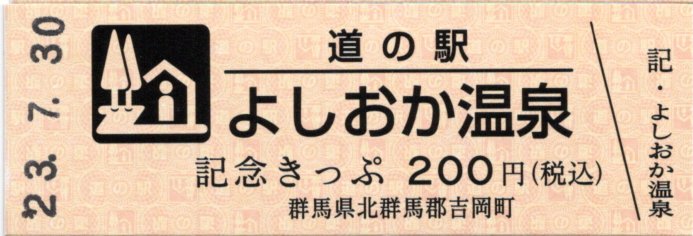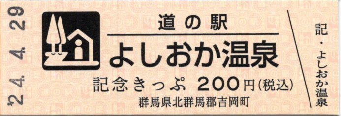 002701~003000 180円きっぷ(道の駅よしおか温泉)