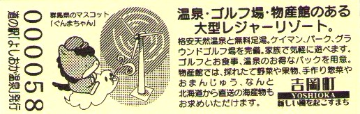 006001~006300 180円きっぷ(家族や友達とゴルフ・食事・温泉)