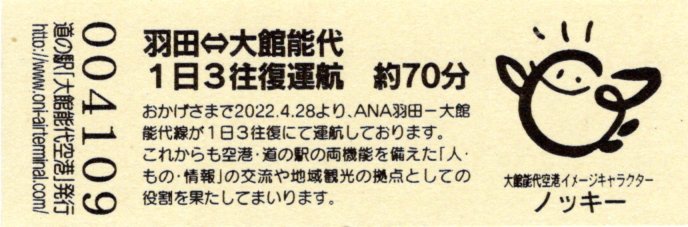 000901~001200 (特)大館能代空港25周年特別記念きっぷ