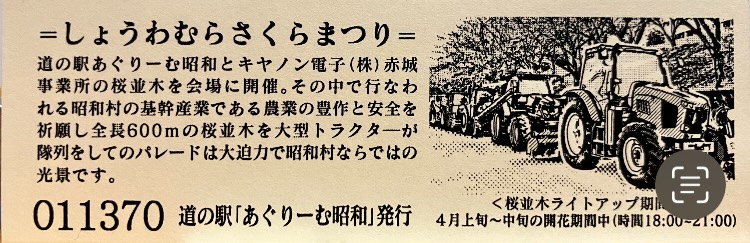 011301~011600 200円きっぷ(しょうわむらさくらまつり)