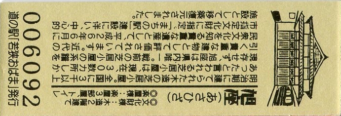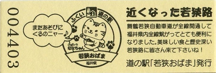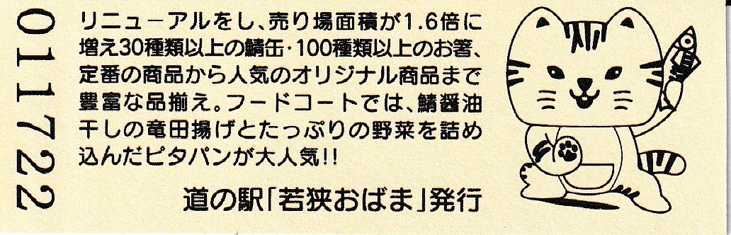 011101~011700 200円きっぷ(「道の駅若狭おばま」が全面リニューアル)