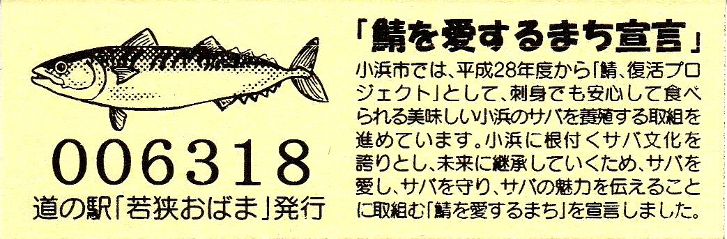 006301~006600 180円きっぷ(鯖を愛するまち宣言・左)