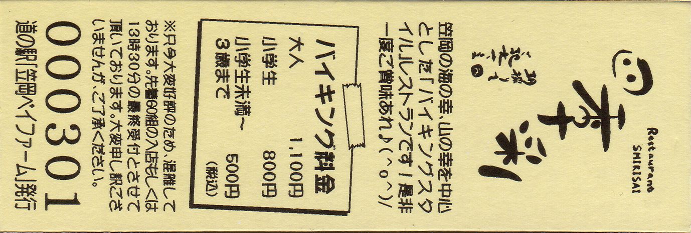 000001~000300 180円きっぷ(道の駅スタンプ)