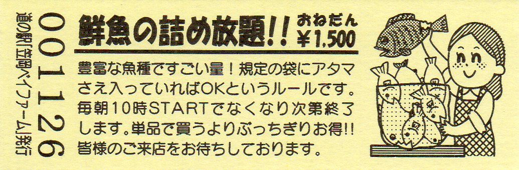 001101~001700 180円きっぷ(鮮魚の詰め放題)