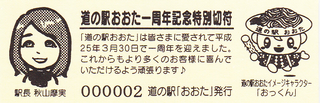 000001~000300 (特)道の駅おおた一周年記念特別切符