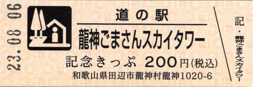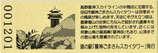 001201~001500 180円きっぷ(高野龍神スカイラインの中間点・イラスト左)
